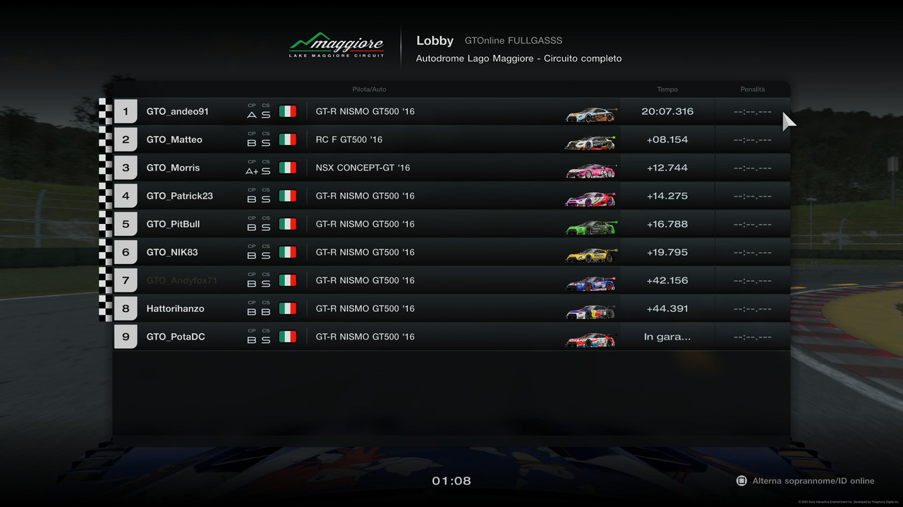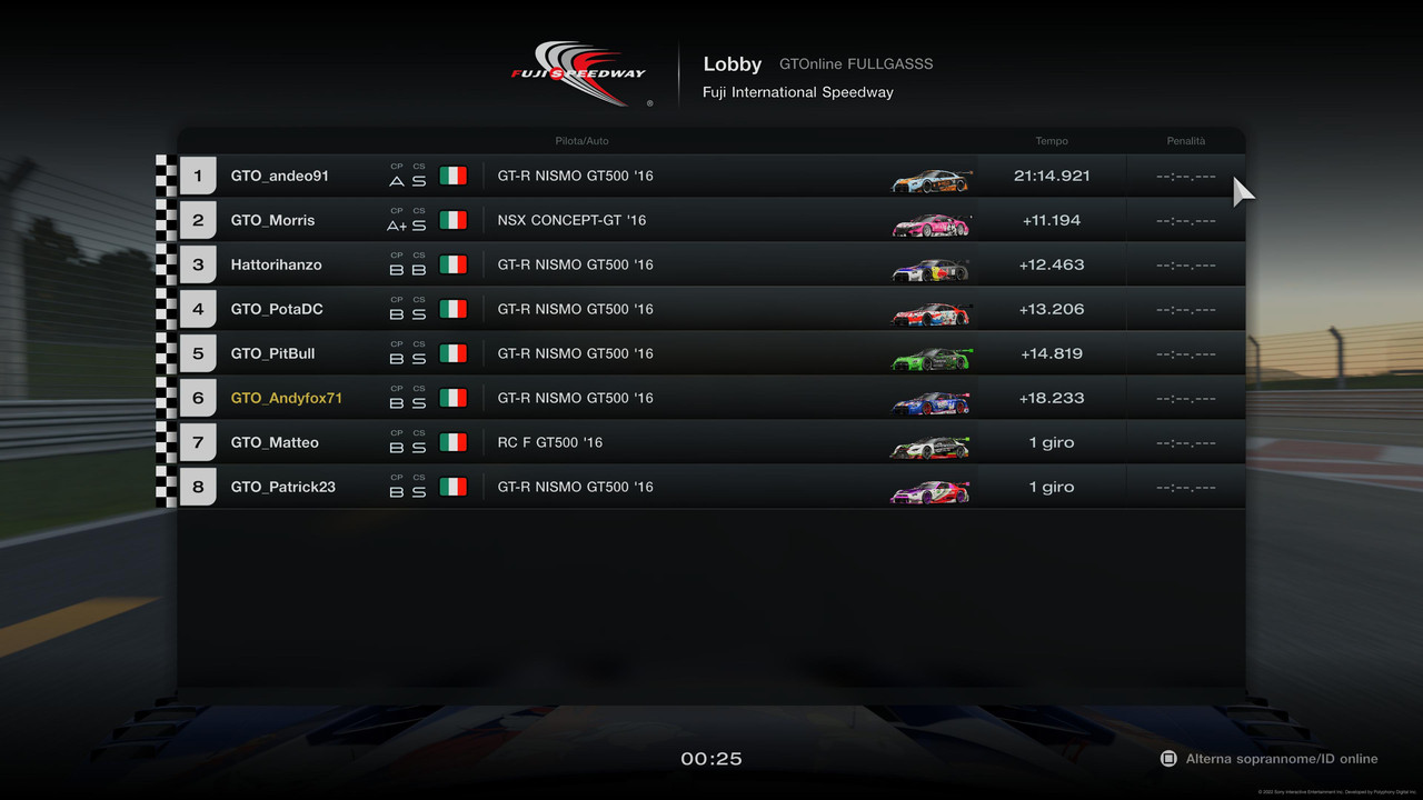 | GTO_Andyfox71 | GT-R NISMO GT500 '16 | 9 | 10 | 19 | -1 |