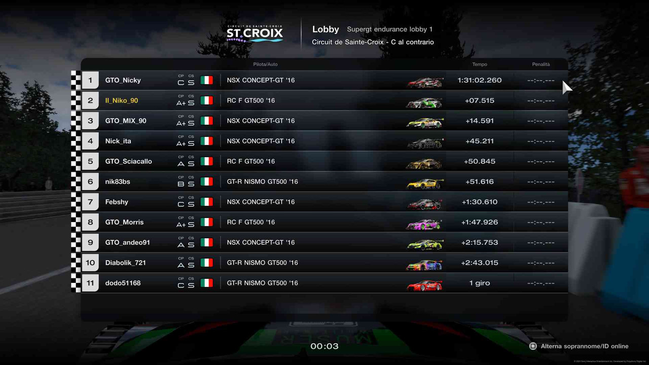 PILOTA AUTO GTO_Nicky Honda RAYBRIG NSX CONCEPT-GT Il_Niko_90 Lexus RC F GT500 GTO_MIX_90 Honda RAYBRIG NSX CONCEPT-GT Nick_ita Honda RAYBRIG NSX CONCEPT-GT GTO_Sciacallo Lexus RC F GT500 nik83bs Nissan GT-R NISMO GT500 Febshy Honda RAYBRIG NSX CONCEPT-GT GTO_Morris Lexus RC F GT500 GTO_andeo91 Honda RAYBRIG NSX CONCEPT-GT Hattorihanzo Nissan GT-R NISMO GT500 Infinito1981 Nissan GT-R NISMO GT500 Lobby 2