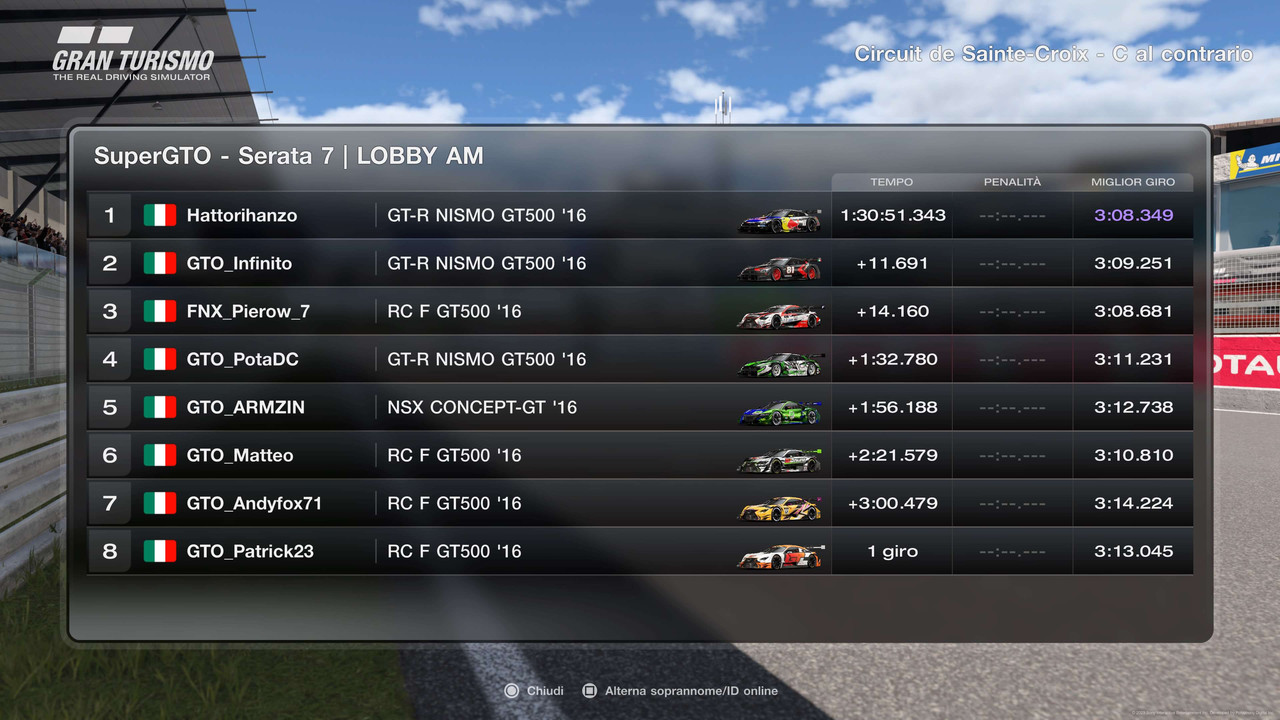 Cita da GTO_Andyfox71 su 30 Marzo 2023, 7:31Formazione lobby gara 8 autopolis